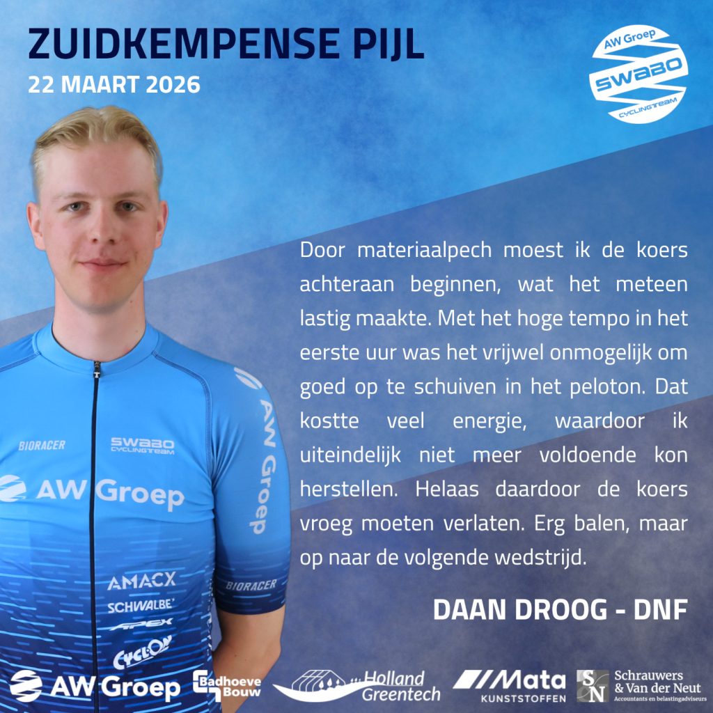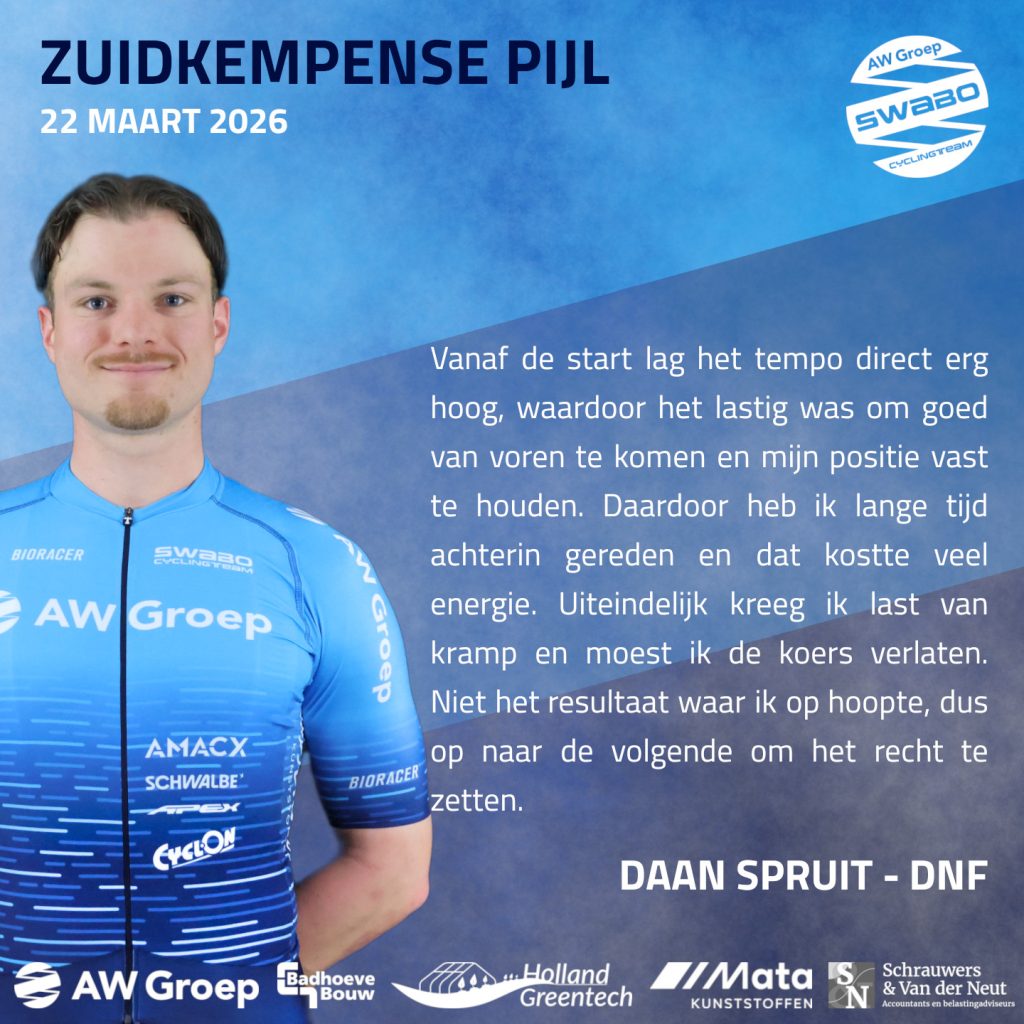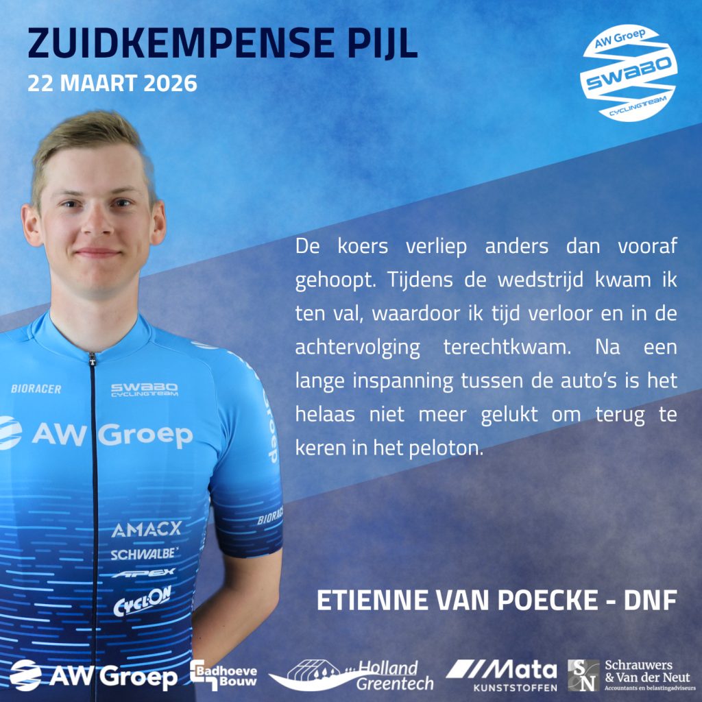Het was een snelle en harde koers, waarin onze renners alles hebben gegeven. De snelheid van het peloton was vanaf het begin hoog, en iedereen vocht voor elke positie. We hebben doorzettingsvermogen getoond, ondanks de tegenslagen. Sven en Jari hadden vooraf op iets meer gehoopt, maar wisten toch een solide resultaat neer te zetten.